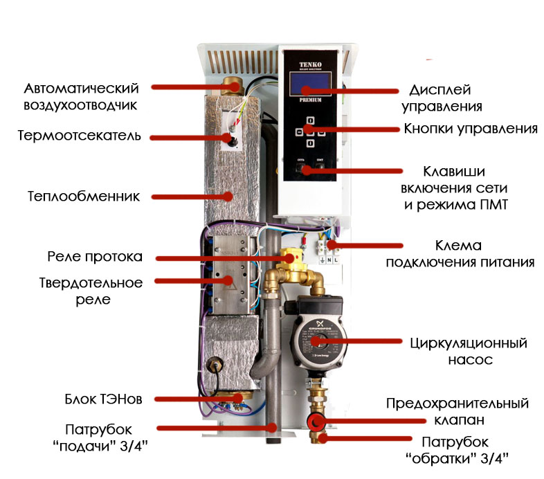 Конструкция электрического котла Tenko Премиум 7,5 кВт 230/400В