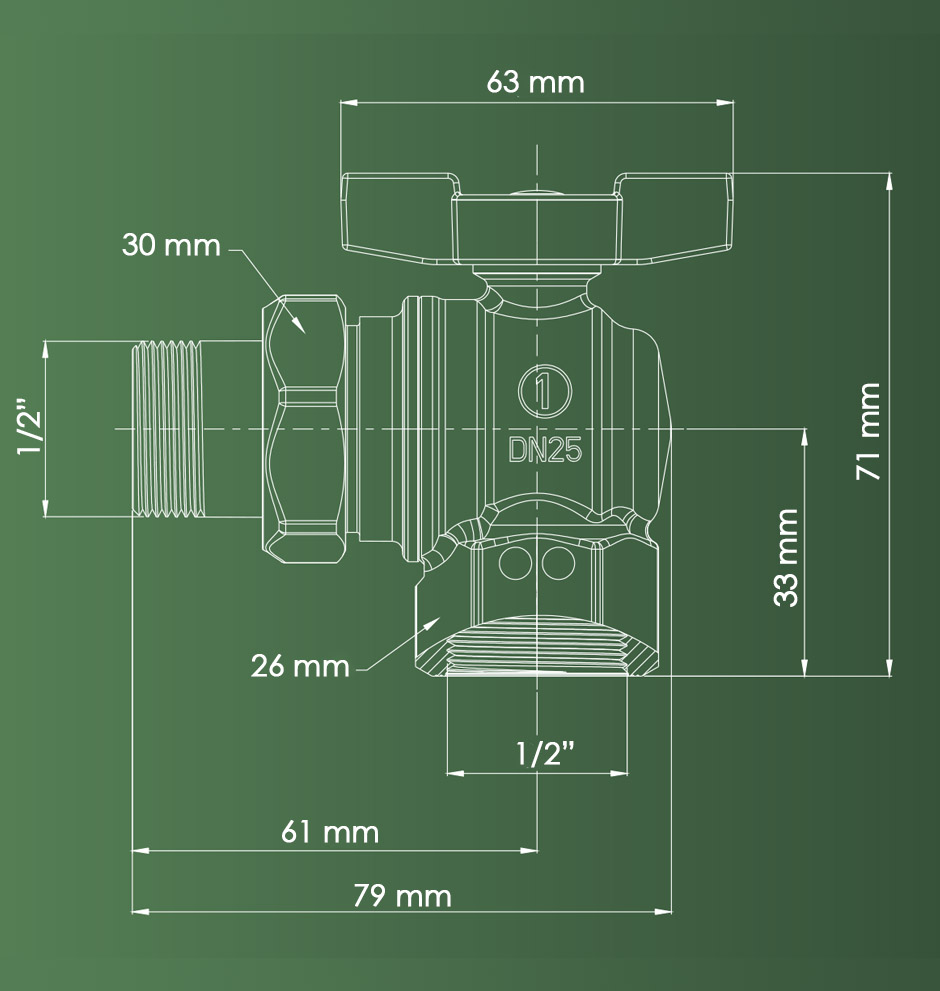 Конструкция и размеры углового крана-американка 1/2":