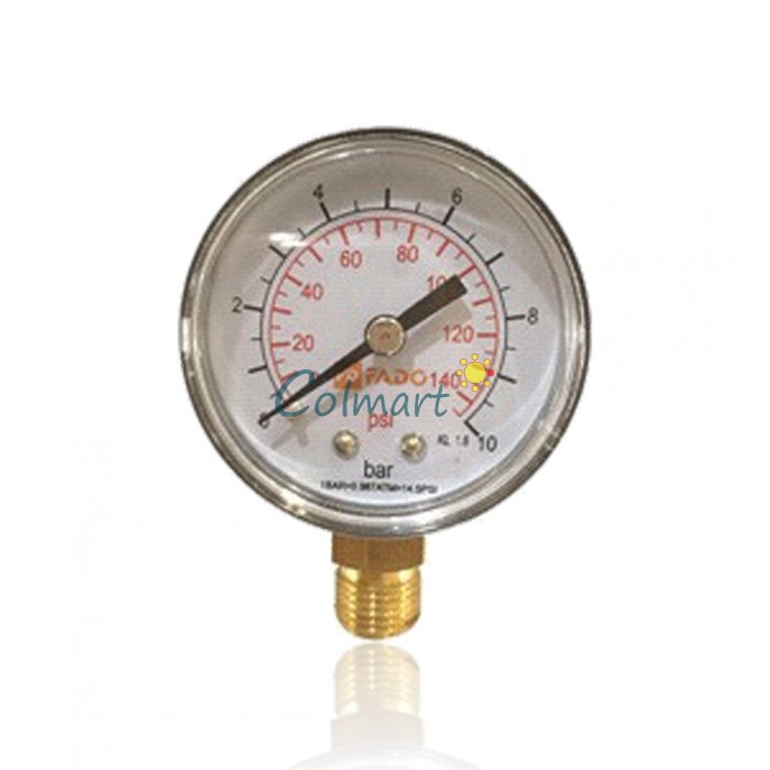Итальянский манометр FADO c вертикальным типом подключения используется с целью измерения давления в газообразной и жидкой среде, не очень вязкой и не кристаллизирующейся, неагрессивной по отношению к медным сплавам в системах водоснабжения, охлаждения, отопления. Измеряет давление в диапазоне от 0 до 10 Бар. Диаметр подключения 1/4".