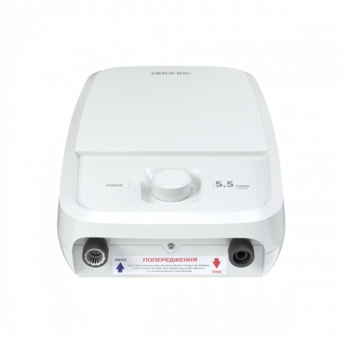 - Система защиты от перегрева Atlantic Tempo Lite 5.5 kW автоматически отключает нагревательный элемент при достижении температуры воды 55 °C. Это исключает закипание и предотвращает риск ожогов пользователя.